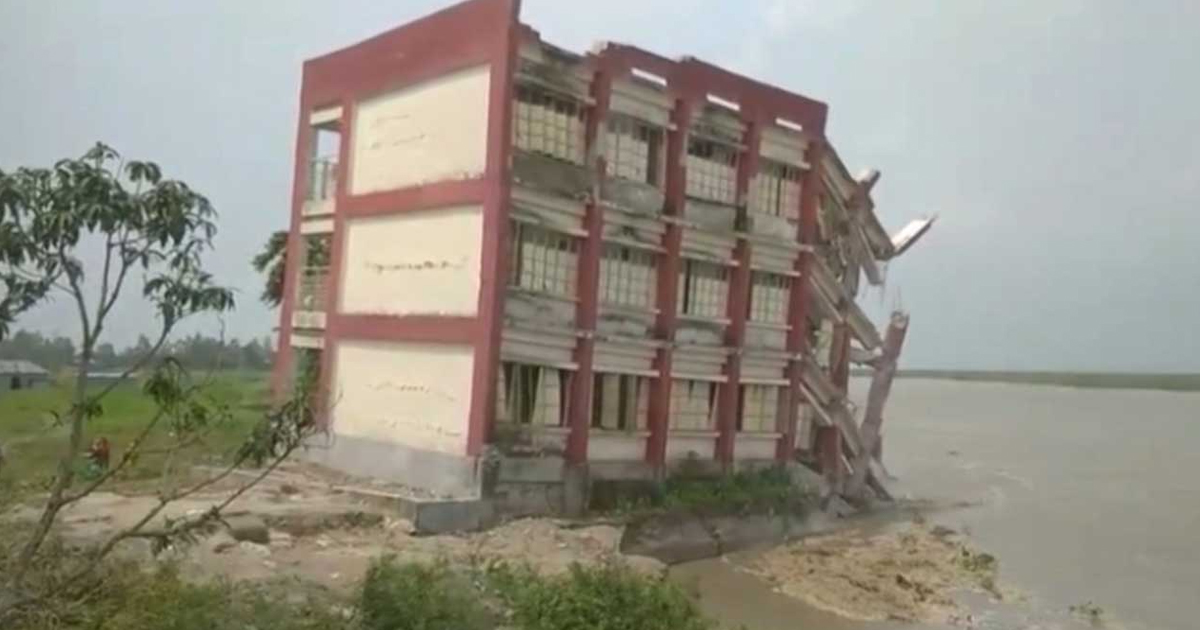 মানিকগঞ্জের দৌলতপুর উপজেলায় যমুনা নদীর অব্যাহত ভাঙনে কয়েক মিনিটেই নদী গর্ভে বিলীন হয়ে গেছে উপজেলার ভারাঙ্গা সরকারি প্রাথমিক বিদ্যালয়ের তিনতলা ভবনটি। গত শনিবার (৭ জুন) দুপুরের দিকে বিদ্যালয়ের তিনতলা ভবনটি পুরোপুরি যমুনায় বিলীন হয়ে যায়। এর আগের দিন শুক্রবার (৬ জুন) বিদ্যালয়ের তিনতলা বিশিষ্ট পাকা ভবনটির আংশিক নদীতে ডেবে যায়।