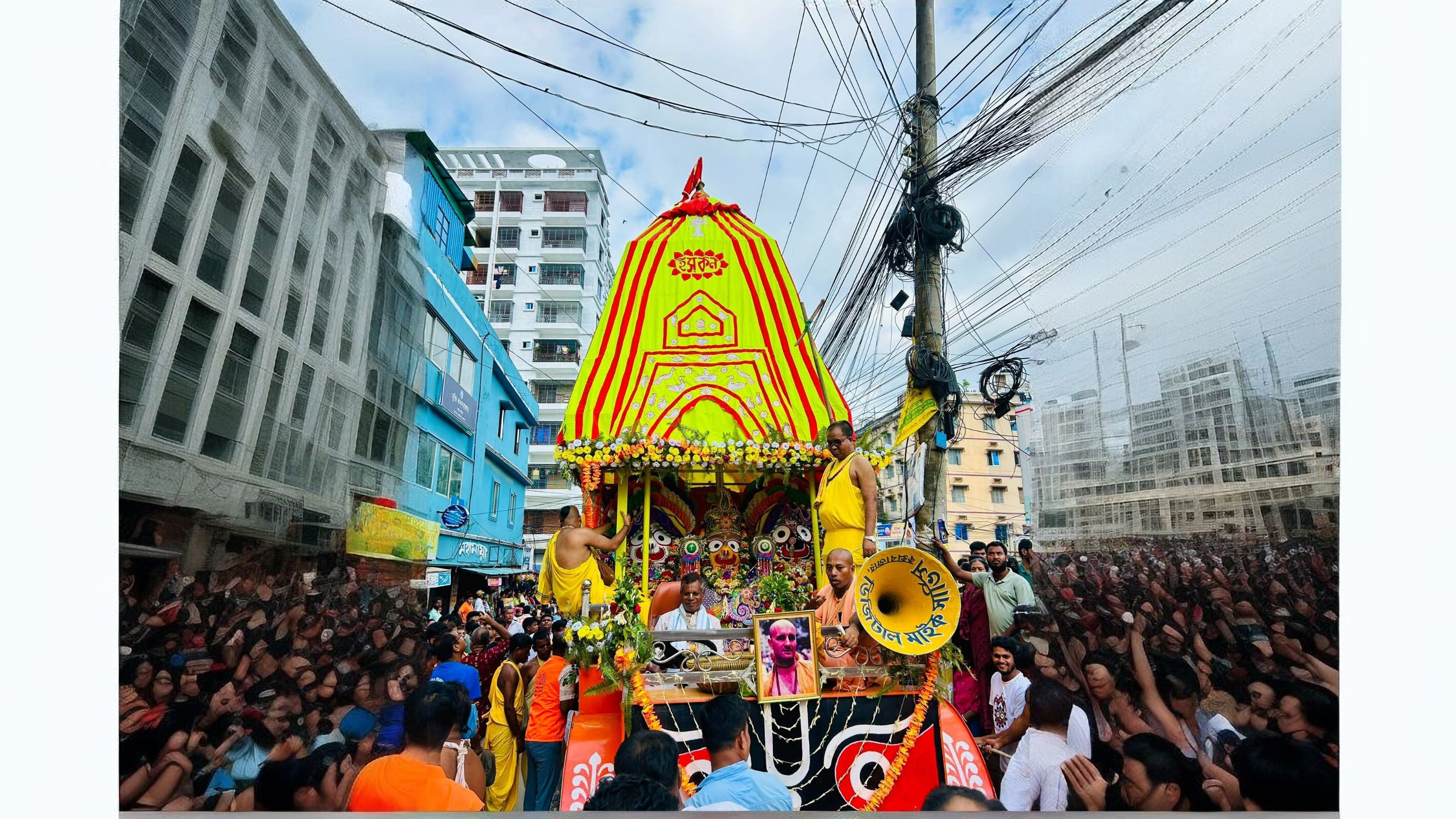 কক্সবাজার শহরে রথযাত্রা উৎসবে শামিল হয়েছে সনাতন ধর্মালম্বী লক্ষাধিক মানুষ। শুক্রবার বিকেল সাড়ে ৪ টায় শহরের গোলদীঘির পাড় থেকে শুরু হয়ে রথ ঘুরেছে পুরো প্রধান সড়কজুড়ে যা ভরে উঠেছে ধর্মীয় ভক্তি আর উৎসবের রঙে। এর আগে দুপুর আড়াইটা থেকে হাজারো মানুষের উপস্থিতিতে ভরে উঠে গোলদীঘির পাড় এবং আশপাশের এলাকা। সেখান থেকে রথ এগিয়ে চলে প্রধান সড়ক ঘুরে বিভিন্ন স্থানে—গভীর ভক্তি আর বর্ণাঢ্য শোভাযাত্রায় মেতে ওঠে সব বয়সের মানুষ। ঢাক-ঢোল, কীর্তন, পূজা আর মঙ্গল প্রদীপে রথযাত্রা পরিণত হয় এক আনন্দমেলায়। রথযাত্রাটি যখন হলিডের মোড় পার হয়ে পর্যটন হোটেল শৈবাল সম্মুখে আসে তখন বাগড়া দেয় বৃস্টি। তবে উৎসব আনন্দে ভাটা পড়েনা। লক্ষাধিক ভক্ত রথের দড়ি টেনে নিয়ে যান ঘোনারপাড়া পর্যন্ত। সনাতন ধর্মালম্বীরা জানান, এই রথ টানা মানেই পুণ্যলাভ। সমুদ্র আর ধর্মীয় উৎসব—দুটি মিলে এক অপূর্ব দৃশ্যের জন্ম দেয় কক্সবাজারে। জগন্নাথ দেব, বলরাম ও সুভদ্রার এই রথযাত্রা স্থানীয় হিন্দু সম্প্রদায়ের জন্য যেমন উৎসবের, তেমনি কৌতূহলী পর্যটকদের জন্যও এটি এক বিশেষ আকর্ষণ। এ রথযাত্রা ঘিরে নিরাপত্তা ব্যবস্থা নেয় স্থানীয় প্রশাসন।