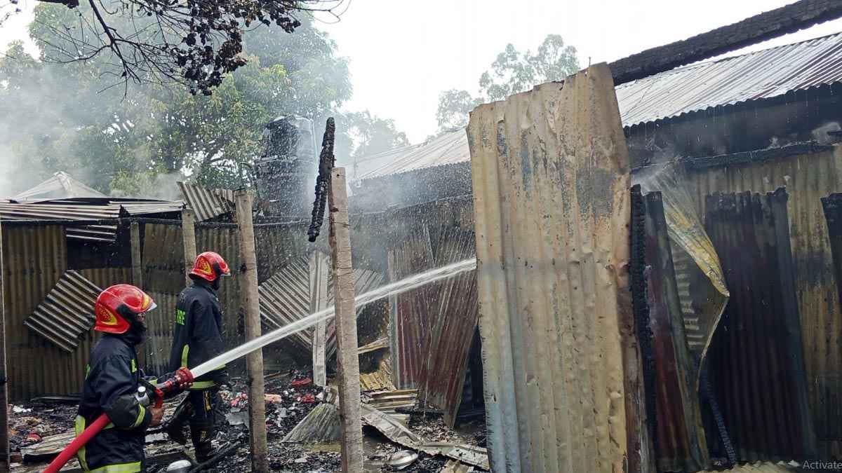 জানা যায়, বেলা সাড়ে ১১টাকার দিকে একটি ঘরের গ্যাস সিলিন্ডার দিয়ে রান্নার কাজ করা হচ্ছিল। এ সময় হঠাৎ সিলিন্ডার বিস্ফোরিত হয়ে আগুন চারদিকে ছড়িয়ে পড়ে। পরে সেখানকার লোকজন পানি দিয়ে আগুন নেভাতে চেষ্টা করে ব্যর্থ হন। পরে স্থানীয় বাসিন্দারা ফায়ার সার্ভিসকে খবর দিলে তারা দ্রুত আগুন নিয়ন্ত্রণে আনে। আগুনে ১২টি ঘর ও বেশ কয়েকটি দোকান পুড়ে যায়। ঘরে থাকা নগদ টাকা, আলমিরা, টিভি, ফ্রিজ, সুকেজ, বইপত্রসহ নানা ধরনের আসবাবপত্র পুড়ে ছাই হয়ে গেছে। এতে কি পরিমাণ ক্ষতি হয়েছে তাৎক্ষণিক তা জানা যায়নি।