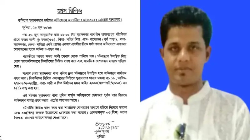 এছাড়া ধর্ষিতার বিবস্ত্র ভিডিওধারন করে সামাজিকমাধ্যমে ছড়িয়ে দেওয়ার অভিযোগে আরও চারজনকে গ্রেফতার করেছে পুলিশ। ভিডিও ধারণকারী অনিক, সুমন, রমজান, বাবু এবং মামলার প্রধান আসামি ফজর আলী সবাই মুরাদনগরের পাঁচকিত্তা এলাকার বাসিন্দা।