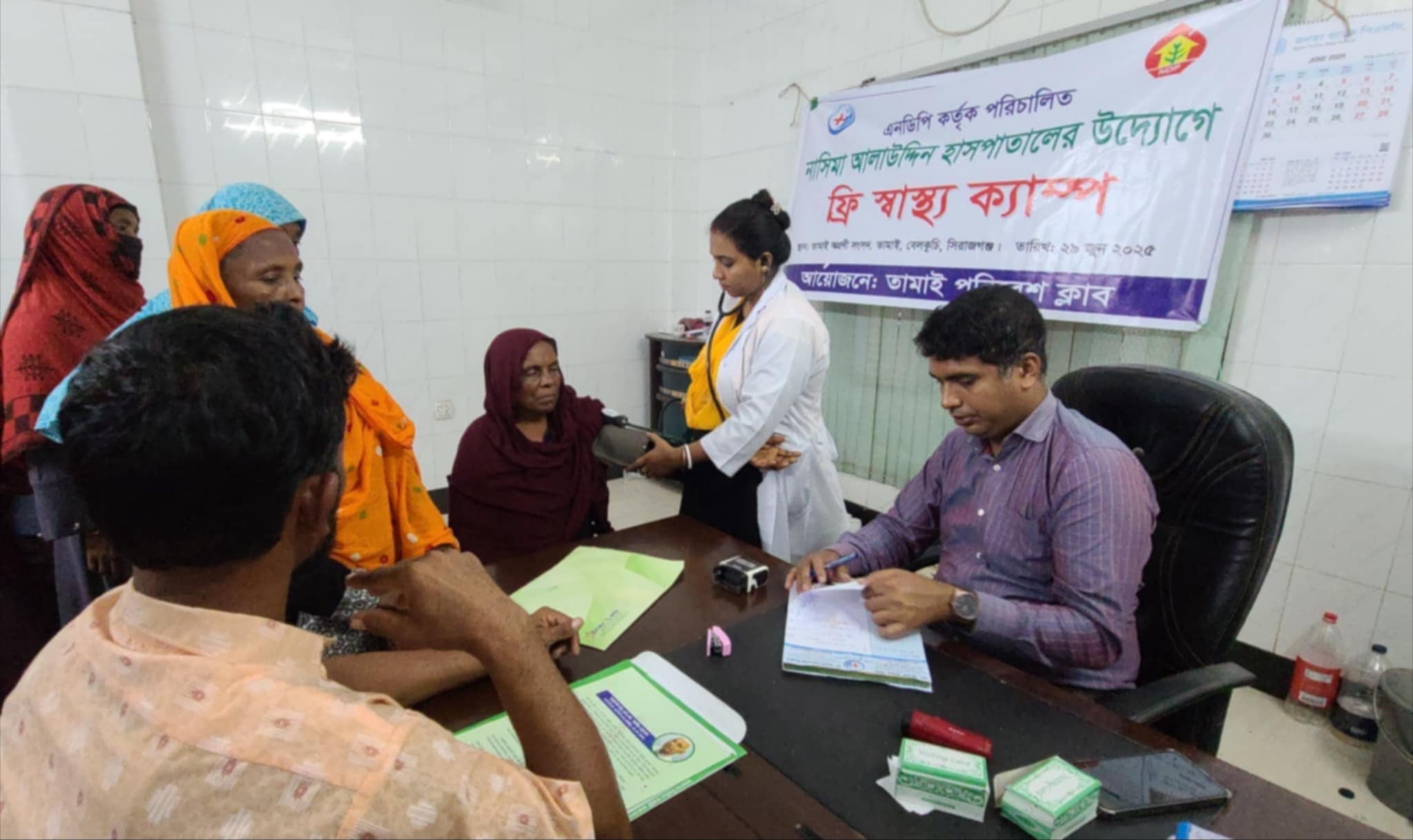 সিরাজগঞ্জের বেলকুচিতে স্বাস্থ্য সচেতনতা ও পরিবেশ সংরক্ষণে এক ব্যতিক্রমধর্মী আয়োজন সম্পন্ন হয়েছে। নাসিমা আলাউদ্দিন হাসপাতাল ও বেসরকারি উন্নয়ন সংস্থা ন্যাশনাল ডেভেলপমেন্ট প্রোগ্রাম (এনডিপি) এর যৌথ উদ্যোগে রবিবার (২৯ জুন) আয়োজিত হয় দিনব্যাপী ফ্রি স্বাস্থ্য ক্যাম্প, পরিবেশবিষয়ক র্যালি, কুইজ প্রতিযোগিতা ও বৃক্ষরোপণ কর্মসূচি।