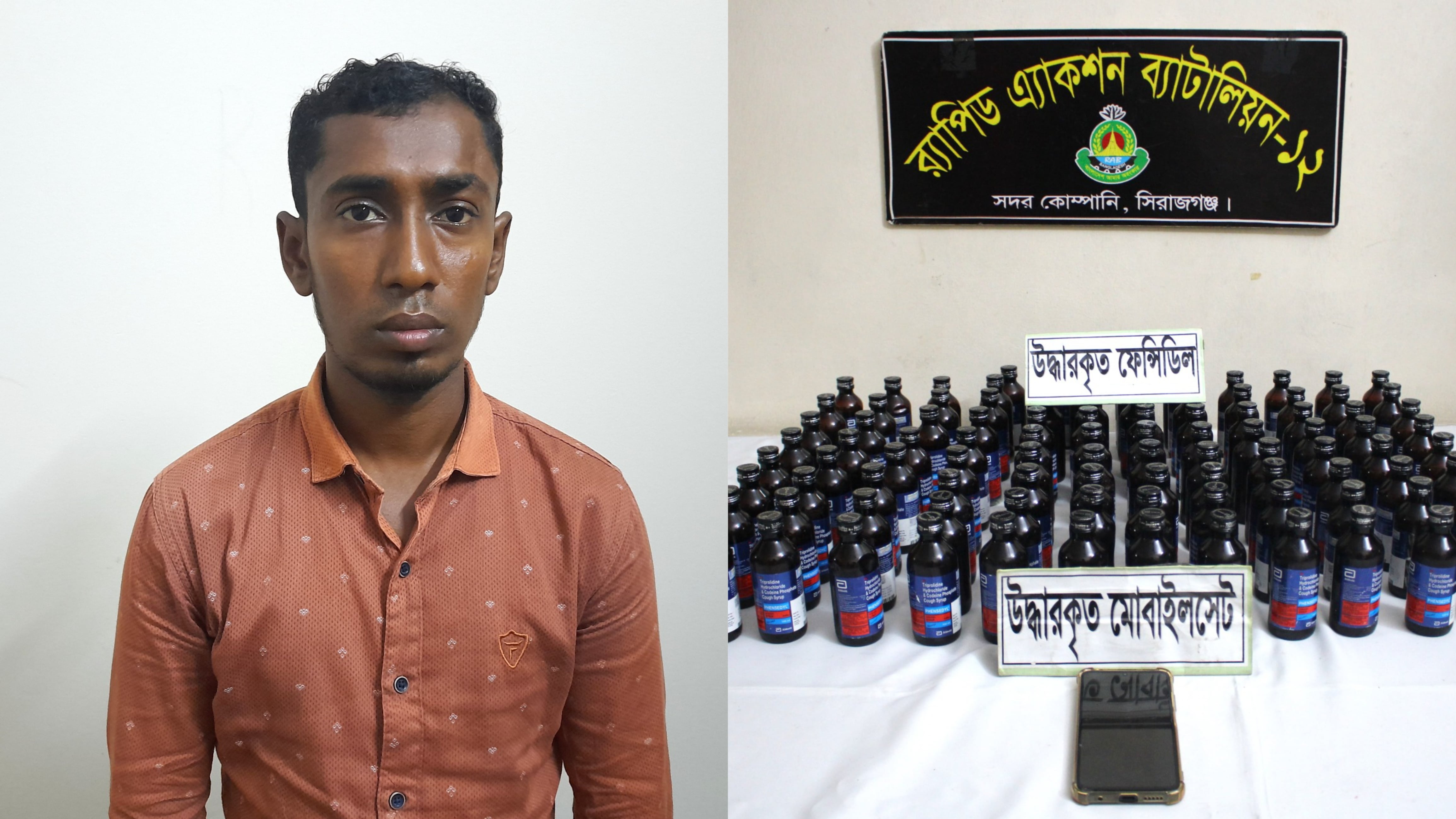 গ্রেপ্তারকৃত ব্যক্তির নাম মো. দুলাল ফকির (২৯)। তিনি বগুড়া জেলার দুপচাঁচিয়া থানার মণ্ডলপাড়া গ্রামের মো. আব্দুর রহিম ফকিরের ছেলে। অভিযানে তার কাছ থেকে একটি মোবাইল ফোনও জব্দ করা হয়, যা ফেন্সিডিল ক্রয়-বিক্রয়ে ব্যবহৃত হতো বলে জানিয়েছে র্যাব।