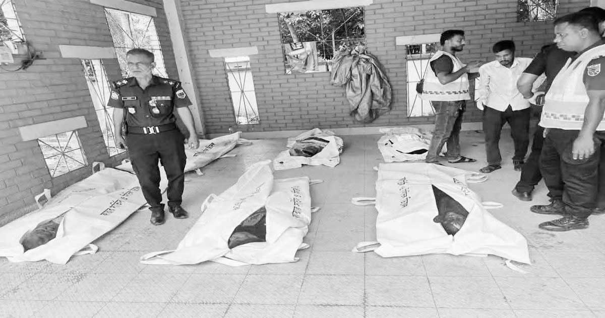 একই পরিবারের নিহত সাতজন হলেন জাহিদুল ইসলাম, সেলিনা খাতুন, রোউসনারা আক্তার ইতি, আনোয়ারা খাতুন, আনোয়ারা খাতুন আনু, আনজুমান ও সীমা।