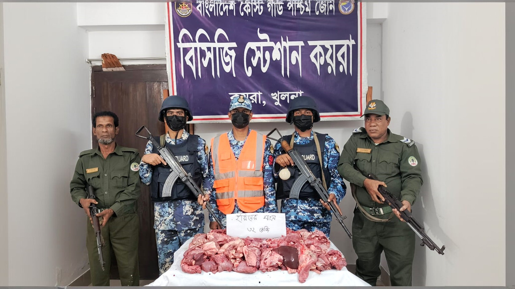 কোস্ট গার্ডের অভিযানে ৩২ কেজি হরিণের মাংস জব্দ করেছে খুলনার কয়রায়।