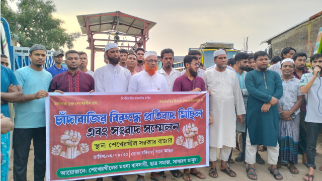 বাঁশখালী উপজেলার শেখেরখীল এলাকায় চাঁদাবাজি ও জেটিঘাট থেকে বিনা রশিদে অতিরিক্ত টাকা আদায় বন্ধসহ ৫ দফা দাবিতে সংবাদ সম্মেলন করেছেন এলাকার সর্বস্তরের জনসাধারণ। রবিবার (৩ আগস্ট) বিকেলে শেখেরখীল সরকার বাজারে অনুষ্ঠিত সংবাদ সম্মেলনে ব্যবসায়ী, ছাত্র সমাজ, জেলে ও সাধারণ মানুষ এ দাবি জানান।