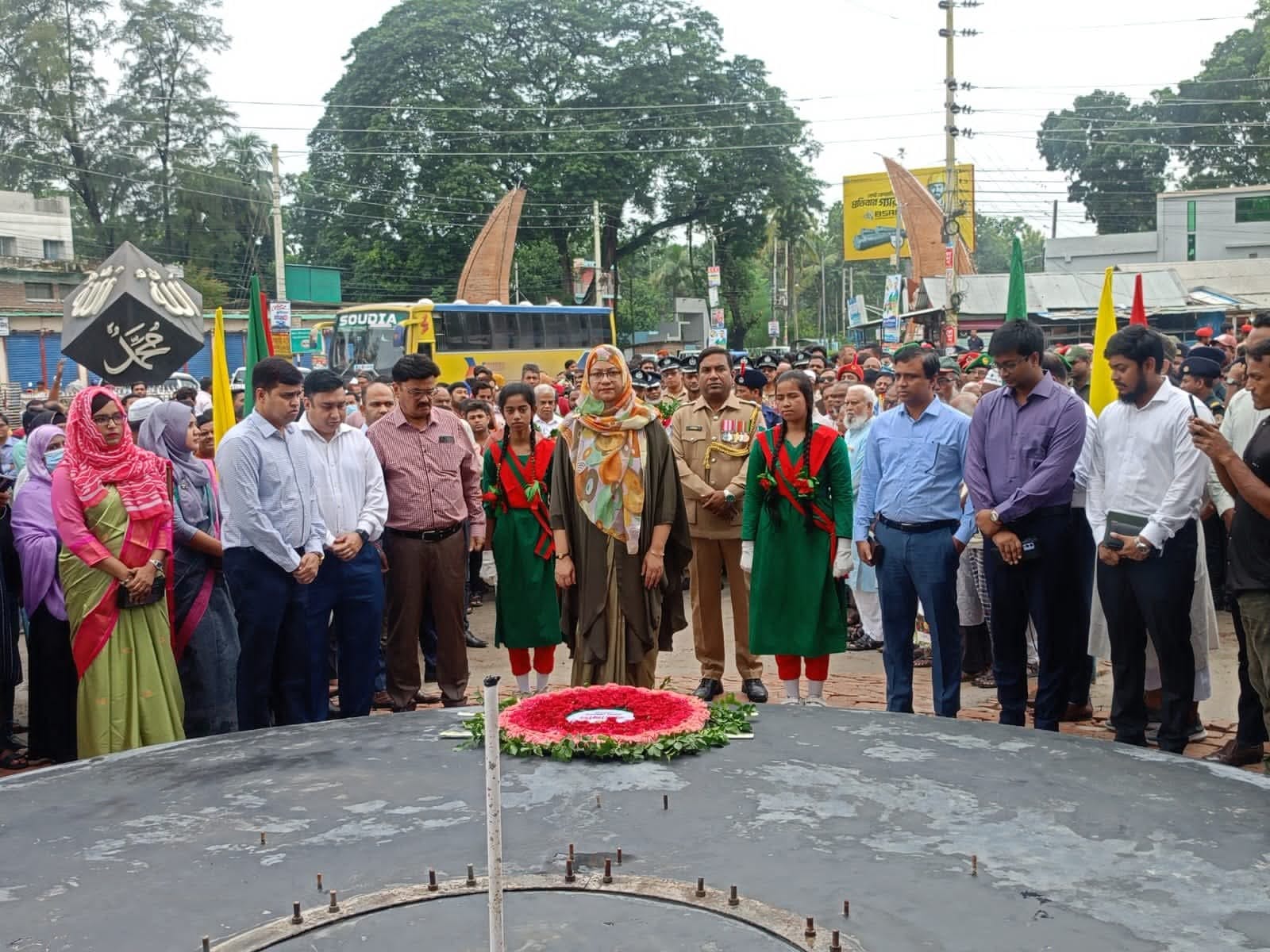 সর্বপ্রথম জেলা প্রশাসনের পক্ষ থেকে পুষ্পার্ঘ্য অর্পণ করেন জেলা প্রশাসক সিফাত মেহনাজ। পরে বাংলাদেশ মুক্তিযোদ্ধা সংসদ ও জেলা পরিষদের পক্ষ থেকেও তিনি শ্রদ্ধা নিবেদন করেন।