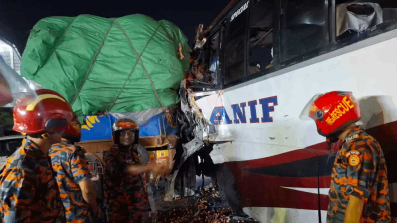 মুন্সীগঞ্জ ফায়ার সার্ভিস অ্যান্ড সিভিল ডিফেন্সের উপ-সহকারী পরিচালক মো. শফিকুল ইসলাম জানান, এক্সপ্রেসওয়ের ঢাকামুখী লেনে হানিফ পরিবহনের একটি যাত্রীবাহী বাস সামনে থেমে থাকা মালবাহী ট্রাককে অতিক্রম করতে গিয়ে পেছন থেকে ধাক্কা দেয়। এতে বাসের সামনের অংশ দুমড়ে-মুচড়ে যায়।