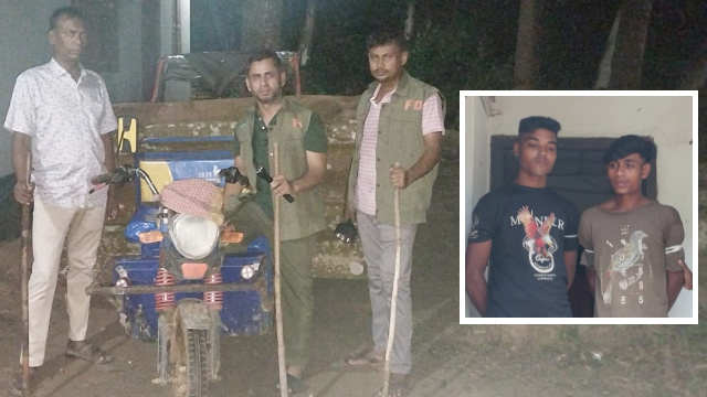 বন বিভাগের বিট কর্মকর্তা অঞ্জন কান্তি বিশ্বাস জানান, বুধবার (১৩ আগস্ট) সকাল ৬টার দিকে নিয়মিত টহলকালে জঙ্গল নাপোড়া মৌজার সরকারি সংরক্ষিত বনে গাছ কাটার শব্দ পান তারা। শব্দের উৎসের দিকে অগ্রসর হয়ে দেখা যায়, স্থানীয় দুই যুবকসহ আরও কয়েকজন ছেও করাত দিয়ে আকাশমনি গাছ টুকরা করছে এবং কাটা কাঠ স্তুপ করছে।