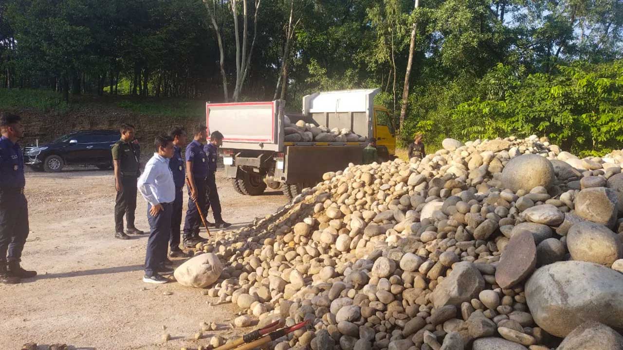 শনিবার (১৬ আগস্ট) গোপন সংবাদের ভিত্তিতে অভিযান চালিয়ে সিলেটের গোয়াইনঘাট উপজেলা ফতেহপুর ইউনিয়নের বিন্নাকান্দি গ্রামের গাংপাড় রাস্তার পাশ থেকে এ পাথর জব্দ করা হয়।