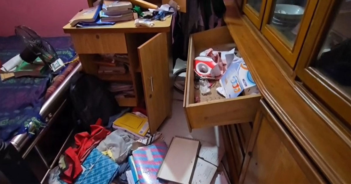 ভুক্তভোগী পরিবার জানায়, রাতের নিরবতা ভেঙে ১০-১২ জনের একটি দল নিজেদের গোয়েন্দা পুলিশের সদস্য পরিচয়ে বাড়ির তৃতীয় তলায় প্রবেশ করে। এরপর তারা অস্ত্রের মুখে পরিবারের সদস্যদের হাত-পা বেঁধে মারধর করে এবং পাশের কক্ষে আটকে রাখে। পরে আলমারি ভেঙে নিয়ে যায় প্রায় ৬ ভরি স্বর্ণ, ১২ ভরি রুপা এবং নগদ ৪৫ হাজার টাকা।
