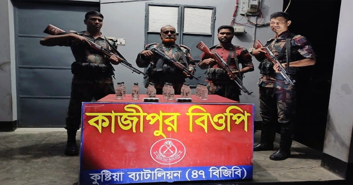প্রেস বিজ্ঞপ্তি সূত্রে জানা যায়, ৪৭ বিজিবির অধীনস্থ কাজিপুর বিওপির দায়িত্বপূর্ণ সীমান্ত পিলার ১৪৫/৫-এস থেকে আনুমানিক ১৫০ গজ ভেতরে কাজিপুর বর্ডারপাড়া মাঠ এলাকায় অভিযান চালানো হয়। জেসিও-৯৪৩৫ সুবেদার মোঃ শাহবুদ্দিনের নেতৃত্বে পরিচালিত এ মাদকবিরোধী অভিযানে ভারতীয় ১৮ বোতল মদ এবং ৭২০ পিস ডেক্সামিথাশন ট্যাবলেট জব্দ করা হয়।
