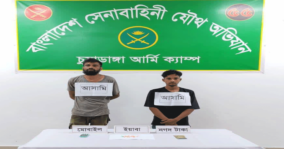 সেনাবাহিনী সূত্রে জানা যায়, গোপন সংবাদের ভিত্তিতে চুয়াডাঙ্গা সেনা ক্যাম্পের ক্যাপ্টেন মনজুর রহমান মাসফিরের নেতৃত্বে একদল সেনাসদস্য টাউন হল মাঠে অভিযান পরিচালনা করে। এ সময় তারিক ও আব্দুর রহমানকে আটক করা হয়। তাদের কাছ থেকে ৪২টি ইয়াবা ট্যাবলেট, একটি গাঁজা সেবনের কলকে, একটি মোবাইল ফোন এবং নগদ ১৩৮০ টাকা উদ্ধার করা হয়েছে।