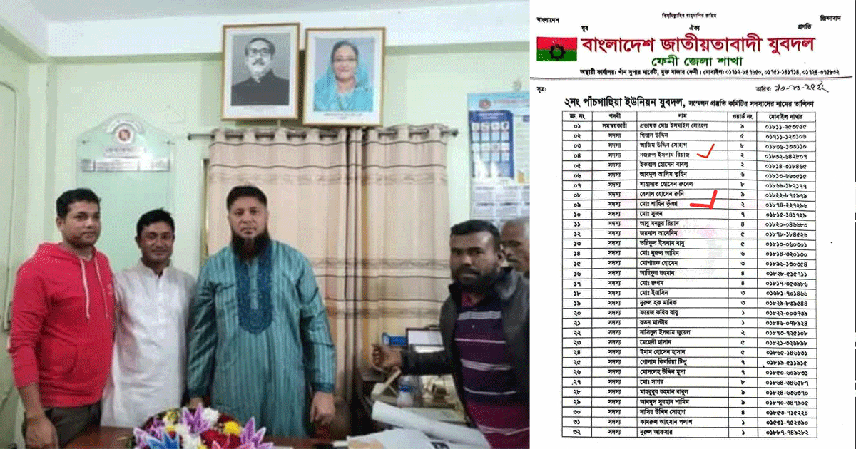 ফেনী সদর উপজেলার পাঁচগাছিয়া ইউনিয়নের যুবদল কমিটিতে যুবলীগের সক্রিয় সদস্যদের অন্তর্ভুক্তির অভিযোগে স্থানীয় বিএনপি ও অঙ্গসংগঠনের নেতাকর্মীদের মধ্যে তীব্র প্রতিক্রিয়া সৃষ্টি হয়েছে।