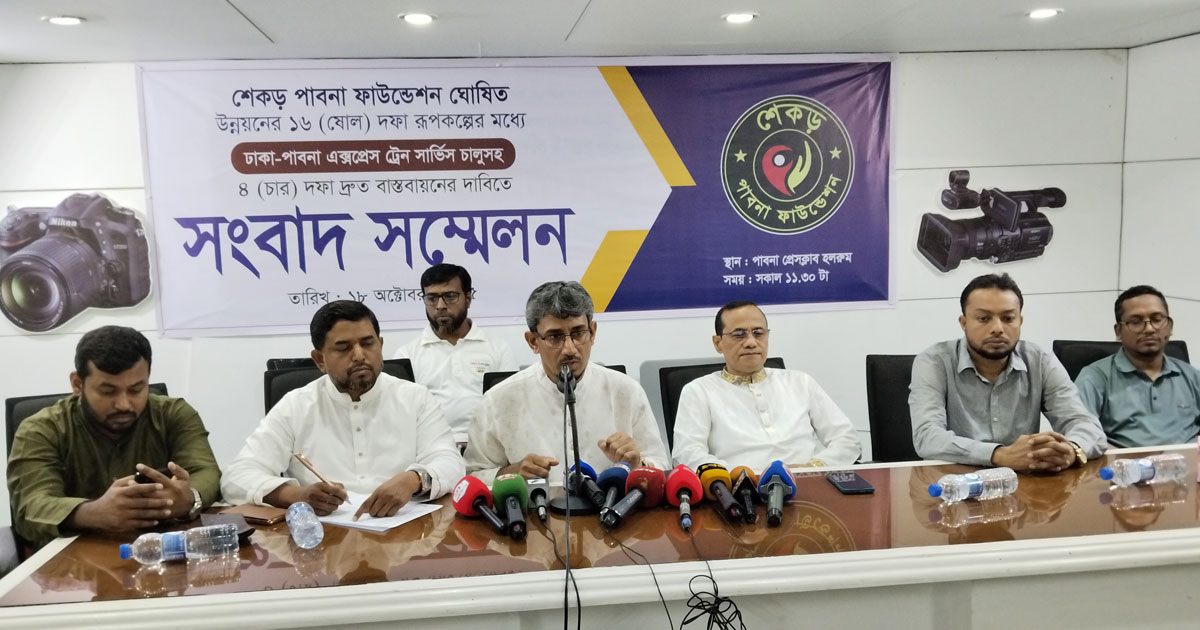 পাবনাবাসীর বহুল প্রত্যাশিত ঢাকা-পাবনা ট্রেন চলাচলে তালবাহানা ও পিছিয়ে দেওয়ার শঙ্কা ও ষড়যন্ত্রের গন্ধ পাচ্ছেন বলে দাবি করেছেন শেকড় পাবনা ফাউন্ডেশন। প্রয়োজনে রেলপথ মন্ত্রণালয়ের সামনে অবস্থান কর্মসূচির ঘোষণা দেয়া হবে। এছাড়াও পাবনার আব্দুল হামিদ রোডসহ ৪ দফা দাবি দ্রুত বাস্তবায়নের দাবি জানানো হয়েছে।