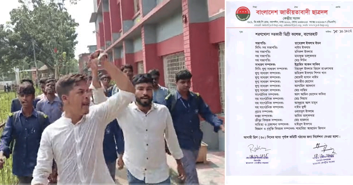 বাংলাদেশ জাতীয়তাবাদী ছাত্রদলের কেন্দ্রীয় কমিটির সভাপতি রাকিবুল ইসলাম রাকিব ও সাধারণ সম্পাদক নাসির উদ্দিন নাসির এর যৌথ স্বাক্ষরে গতকাল ১৮ অক্টোবর এক প্রেস বিজ্ঞপ্তিতে বাগেরহাট জেলার বিভিন্ন শিক্ষা প্রতিষ্ঠানসহ শরণখোলা সরকারি ডিগ্রি কলেজ ছাত্রদলের কমিটি প্রকাশিত হয়। কমিটি প্রকাশের পর তাৎক্ষণিক ফেসবুক স্ট্যাটাস দিয়ে ক্ষোভ প্রকাশ ও পদত্যাগ করেছেন অনেক ছাত্রনেতা।