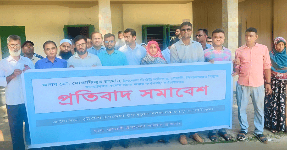 সিরাজগঞ্জের চৌহালী উপজেলা নির্বাহী কর্মকর্তা (ইউএনও) মো. মোস্তাফিজুর রহমানকে নিয়ে সংবাদ প্রকাশের প্রতিবাদে সরকারি কর্মকর্তা-কর্মচারীরা সমাবেশ করেছেন। বুধবার (২২ অক্টোবর) দুপুরে ইউএনও কার্যালয়ের সামনে এ প্রতিবাদ সমাবেশ অনুষ্ঠিত হয়।