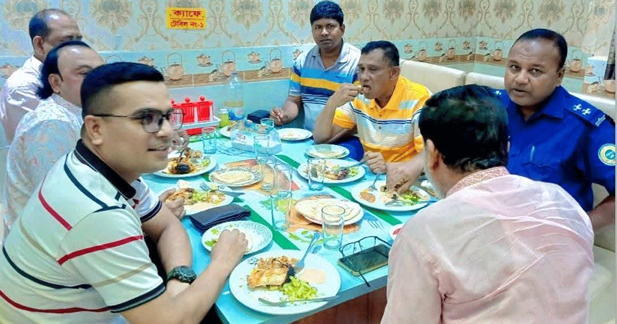 ভাইরাল হওয়া ছবিতে দেখা গেছে, সকাল-সন্ধ্যা হোটেলের ভিআইপি কক্ষে ইউএনও মো. রোকনুজ্জামান খানের সঙ্গে উপজেলা আওয়ামী লীগের সহ-সভাপতি গাজী সামসুল হক, বশির মৃধা, রাসেল ও পুলিশের ট্রাফিক বিভাগের এসআই নুরুজ্জামানসহ সাতজন খাওয়া-দাওয়া করছেন। আরেকটি ছবিতে দেখা যায়- ইউএনও ও তার পরিবার এবং আব্দুল্লাহ আল মামুনসহ পরিবারের ছবি।