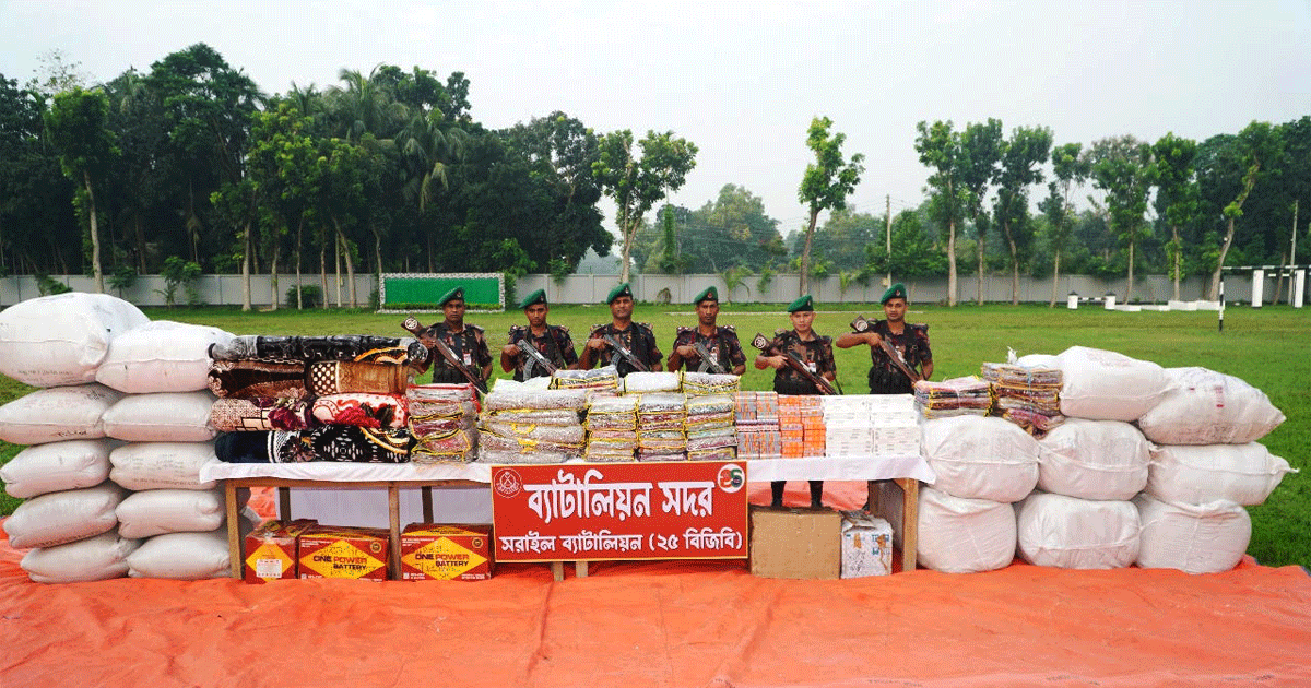 বিজিবি-২৫ ব্যাটালিয়নের অধিনায়ক লে. কর্ণেল মো. জাব্বার আহমেদ জানান, অভিযানে ২৫৪ পিস ভারতীয় জর্জেট শাড়ি, উন্নতমানের লেহেঙ্গা ৬০ পিস, চা পাতা ৪৮০ কেজি, সিগারেট ৬০০ প্যাকেট, উন্নতমানের কম্বল ২২ পিস, কাশমেরী চিলি পাউডার-১২৮ প্যাকেট ও ৪৫০ পিস কালারমিক্সড সফটজেল জব্দ করা হয়।