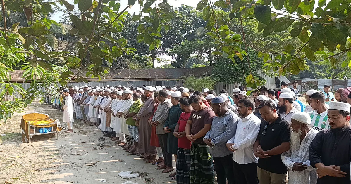 রাজধানীর ফার্মগেটে মেট্রোরেলের বিয়ারিং প্যাড পড়ে নিহত আবুল কালামের জানাজা শেষে লাশ দাফন সম্পন্ন হয়েছে। সোমবার (২৭ অক্টোবর) সকাল ৯টায় নড়িয়া উপজেলার ইউনিয়নের পোড়াগাছা মাদ্রাসা মাঠে জানাজা শেষে নড়িয়া পৌর কবরস্থানে তার দাফন সম্পন্ন হয়। এর আগে রবিবার গভীর রাতে নিজ গ্রামের বাড়ি শরীয়তপুরের নড়িয়া উপজেলার মোক্তারচর ইউনিয়নের ঈশ্বরকাঠি গ্রামে তার লাশ পৌঁছায়।