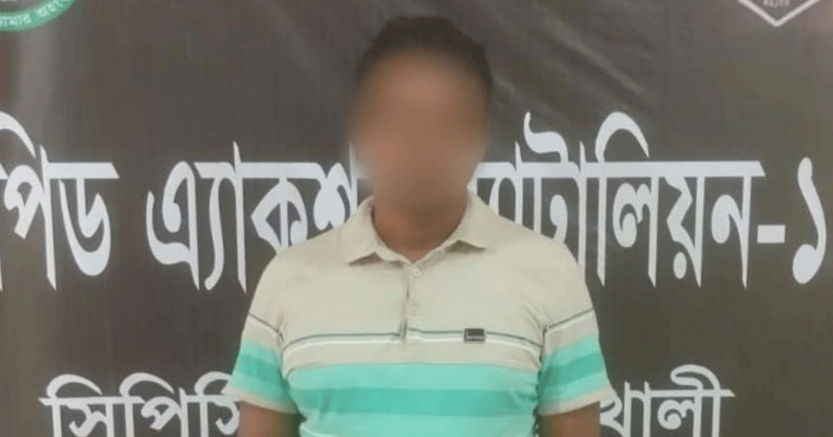 এর আগে গোপন সংবাদের ভিত্তিতে বিশেষ অভিযান পরিচালনা করে উপজেলার হাজীপুর ইউনিয়নের তিন নং ওয়ার্ডের দক্ষিণ ঘটলা এলাকার কাশেম মঞ্জিল নামক বাড়ির সামনে পাকা রাস্তা থেকে তাকে গ্রেপ্তার করে র্যাব-১১, সিপিসি-তিন, নোয়াখালী।