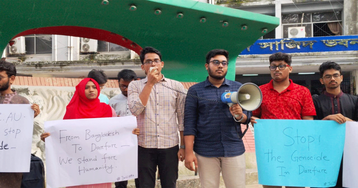 সুদানের পশ্চিম দারফুর অঞ্চলের আল-ফাশের শহরে চলমান গণহত্যা বন্ধ ও আন্তর্জাতিক সম্প্রদায়কে শান্তি প্রতিষ্ঠার দাবিতে মানববন্ধন করেছে জগন্নাথ বিশ্ববিদ্যালয় (জবি) হিউম্যান রাইটস সোসাইটি।