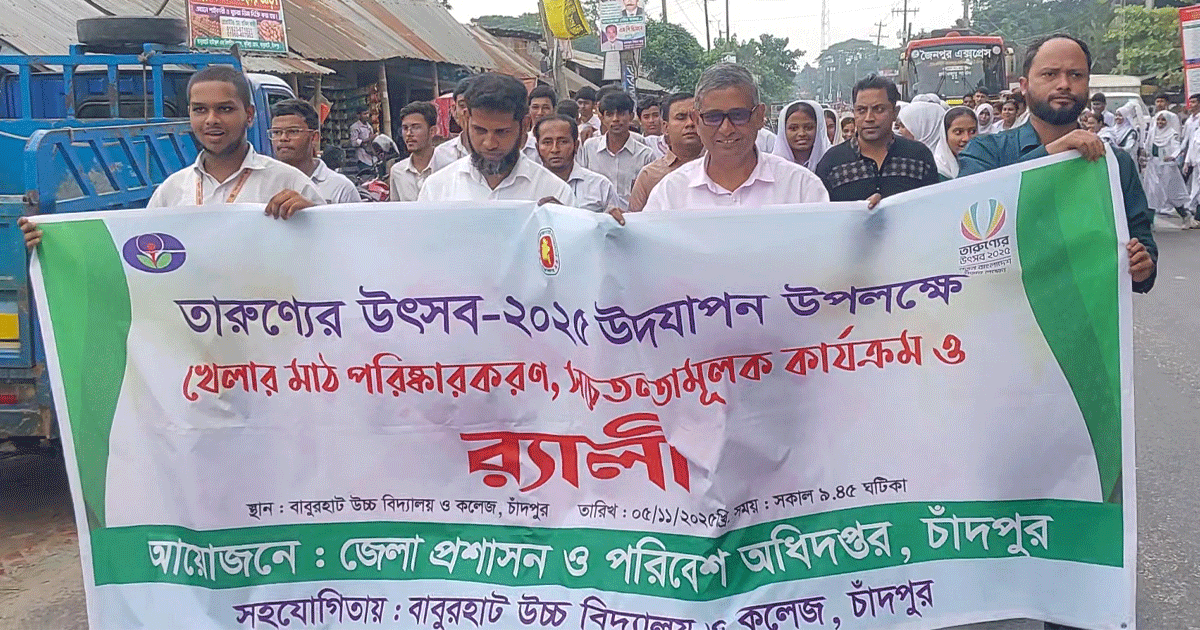 চাঁদপুর প্রতিনিধি উৎসব ২০২৫ উদযাপন উপলক্ষে খেলার মাঠ পরিস্কার করণ, সচেতনতামূলক কার্যক্রম ও র্যালি অনুষ্ঠিত হয়েছে।