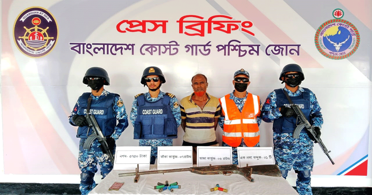 অস্ত্র ও গোলাবারুদসহ সুন্দরবনের দুর্ধর্ষ ডাকাত দুলাভাই বাহিনীর এক সদস্যকে আটক করেছে কোস্ট গার্ড।