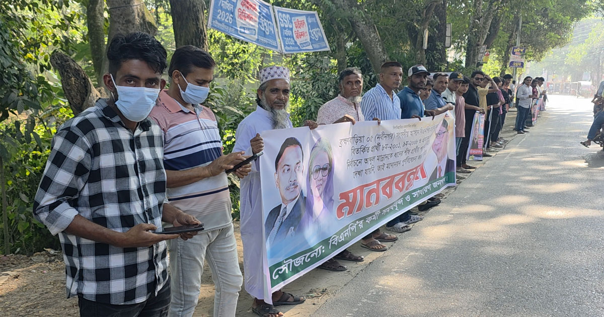 এতে ২১টি ইউনিয়ন ও একটি পৌরসভার হাজার হাজার স্থানীয় নেতাকর্মী ছাড়াও এলাকার সাধারণ জনগণ ও কয়েকশো নারী হাতে ব্যানার ফেস্টুন নিয়ে মানববন্ধনে অংশ নেন।