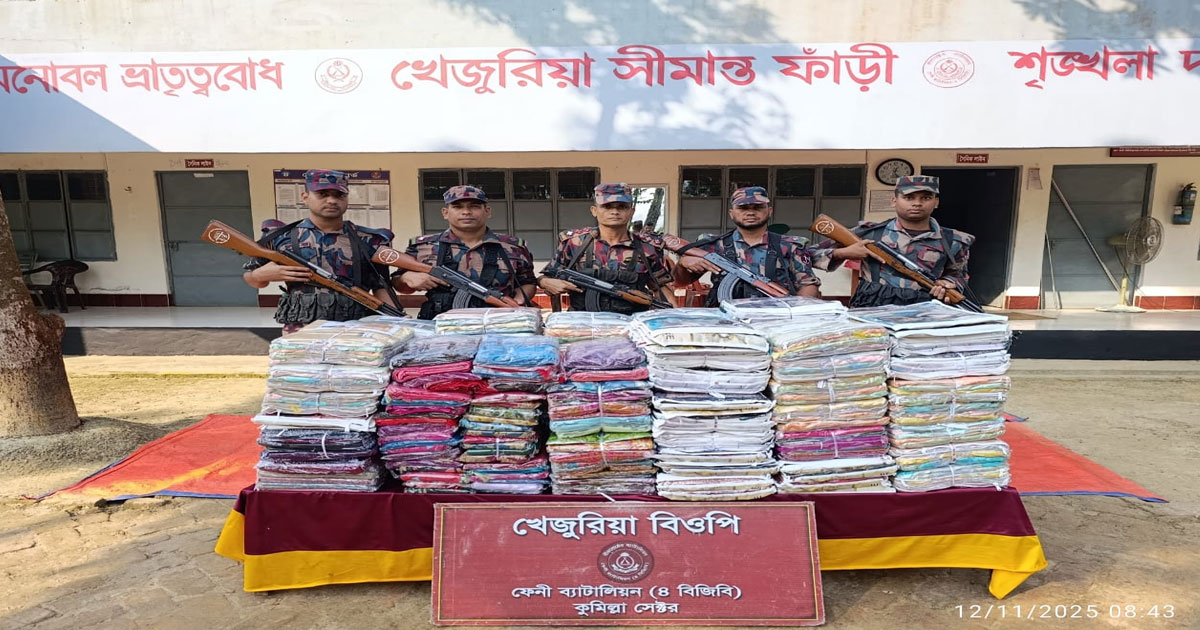 মঙ্গলবার (১২ নভেম্বর) গোপন সংবাদের ভিত্তিতে ফেনী ব্যাটালিয়নের টহলদল সীমান্তের বিভিন্ন পয়েন্টে একযোগে অভিযান চালায়। এ সময় বিপুল পরিমাণ ভারতীয় শাড়ি শীতবস্ত্র, বিভিন্ন ব্র্যান্ডের চকলেট ও অন্যান্য ভোগ্যপণ্য জব্দ করা হয়