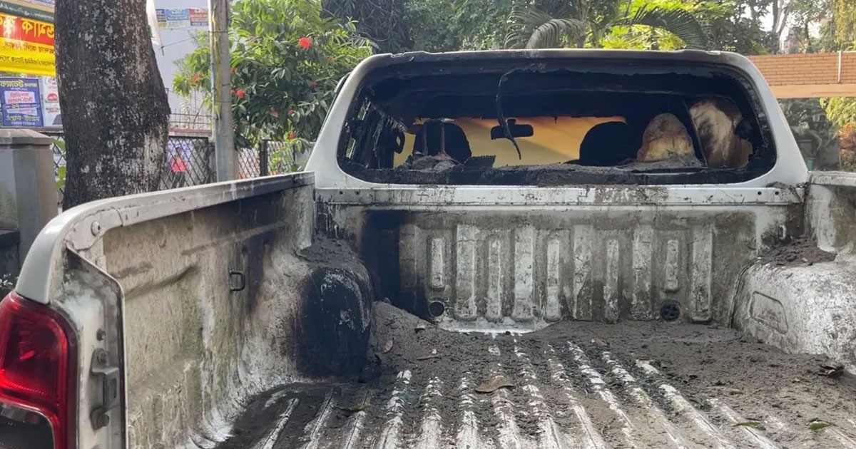 দুর্বৃত্তদের নিক্ষেপ করা এ পেট্রোল বোমায় আগুন লেগে গণপূর্ত বিভাগের একটি পিকআপ ভ্যান পুড়ে যায়।