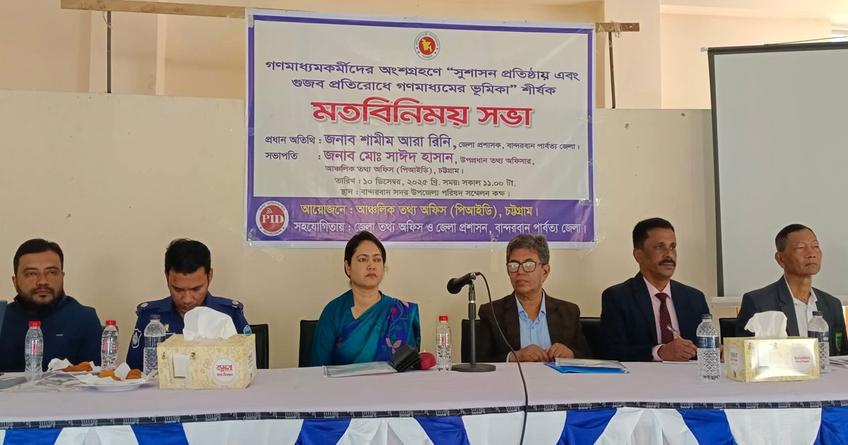 বুধবার (১০ডিসেম্বর) সকালে বান্দরবান সদর উপজেলা মিলনায়তনে আঞ্চলিক তথ্য অফিস (পিআইডি) চট্টগ্রামের আয়োজনে এবং জেলা তথ্য অফিস ও জেলা প্রশাসন বান্দরবানের সহযোগিতায় মতকিনিময় সভায় প্রধান অতিথি ছিলেন জেলা প্রশাসক শামীম আরা রিনি।
