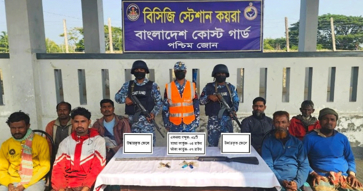 সুন্দরবনের দুর্ধর্ষ ডাকাত জাহাঙ্গীর বাহিনীর আস্তানা হতে অস্ত্র-গোলাবারুদসহ জিম্মি থাকা ৮ জেলেকে উদ্ধার করেছে কোস্ট গার্ড।