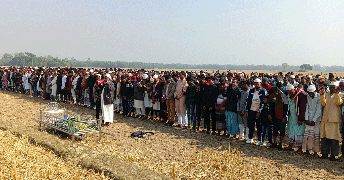 জানাজার মাঠে মানুষের ঢল নামে সকালেই। গ্রামের বৃদ্ধ থেকে শুরু করে স্কুলপড়ুয়া ছেলেরা সবার চোখ ভিজা দেখা যায়।