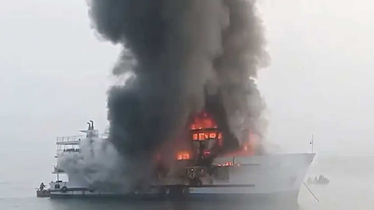 কক্সবাজারে সেন্টমার্টিনগামী ‘দ্যা আটলান্টিক ক্রুজ’ নামে জাহাজে আগুন লেগেছে। শনিবার (২৭ ডিসেম্বর) কক্সবাজার শহরের নুনিয়াছড়া বিআইডব্লিউটিএ ঘাট সংলগ্ন বাঁকখালী নদীতে এ ঘটনা ঘটে।
