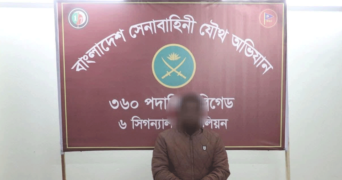 শনিবার বাংলাদেশ সেনাবাহিনী এক সংবাদ বিজ্ঞপ্তিতে জানান, (শুক্রবার)সন্ধ্যায় সুনির্দিষ্ট গোয়েন্দা তথ্যের ভিত্তিতে সুনামগঞ্জের দিরাই উপজেলায় সেনাবাহিনীর নেতৃত্বে যৌথ অভিযানে একজন চিহ্নিত সন্ত্রাসীকে গ্রেপ্তার করা হয়। অভিযানে ১টি বিদেশি পিস্তল, একটি একনলা বন্দুক, ৮ রাউন্ড পিস্তলের গোলাবারুদ, বেশকিছু পাসপোর্ট ও দেশীয় ধারালো অস্ত্র উদ্ধার করা হয়।