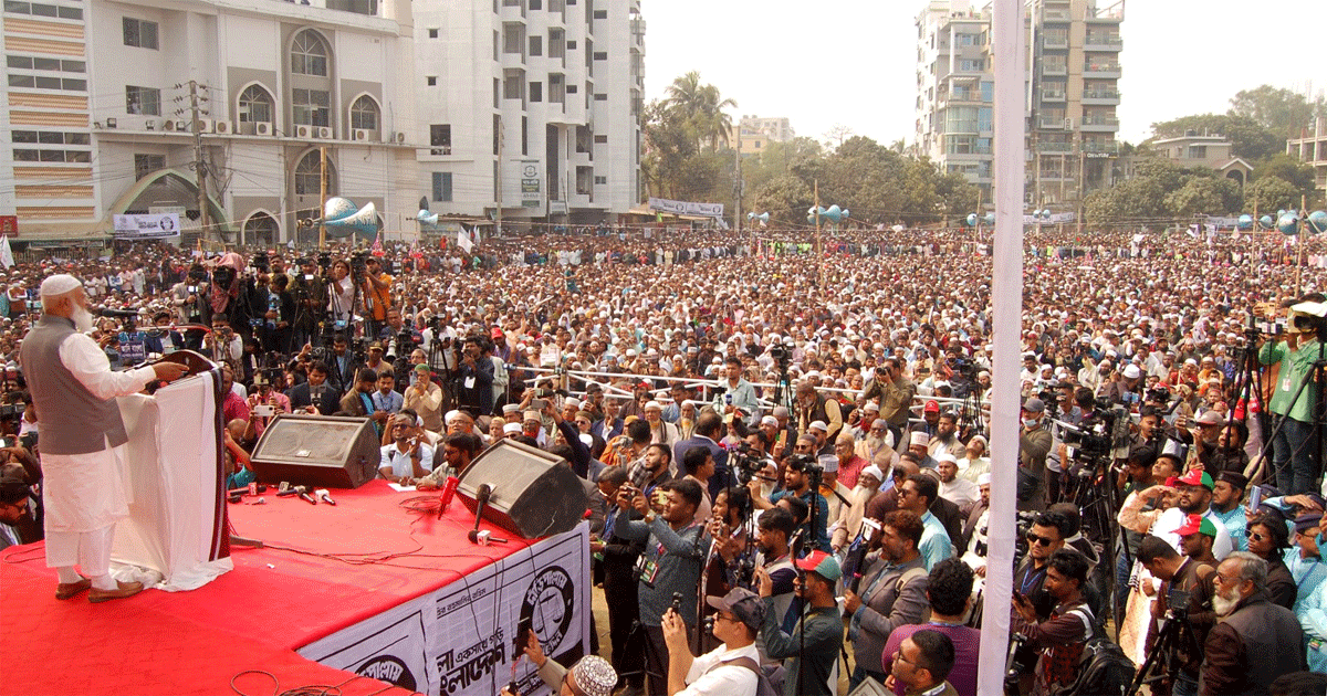 আমিরে জামায়াত বলেন, জুলাই আন্দোলনে জীবনদানকারী বীর শহীদদের আকাংখা ছিল একটি সুখী, সমৃদ্ধশালী, দূর্নীতি, দু:শাসন ও চাঁদাবাজমুক্ত বাংলাদেশ। জনগণ জামায়াতে ইসলামীকে সরকার গঠনের সুযোগ দিলে শহীদদের আকাংখা বাস্তবায়নে চাঁদাবাজমুক্ত বাংলাদেশ গড়ে তোলা হবে। তিনি বলেন, আমরা বিভক্ত চাই না। সবাএিক নিয়ে ঐক্যবদ্ধ বাংলাদেশ গড়তে চাই। যারা অতীতে জাতিকে ১০ টাকা কেজি চাউল খাওয়ানোর লোভ দেখিয়ে ধোকা দিয়েছিল তাদের পরিনতি সবাই দেখেছে। এখনো যারা নানাভাবে জনগণকে ধোকা দিতে চান তাদেরকে জনগণ প্রত্যাখ্যান করবে।