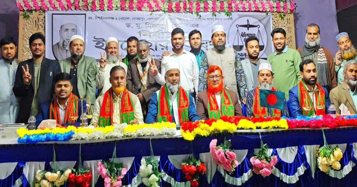 চাঁপাইনবাবগঞ্জ-০২ (নাচোল, গোমস্তাপুর, ভোলাহাট) আসনে ৫৫ দফা নির্বাচনী ইশতেহার ঘোষণা করেছেন জামায়াত মনোনীত সংসদ সদস্য প্রার্থী ড. মিজানুর রহমান।