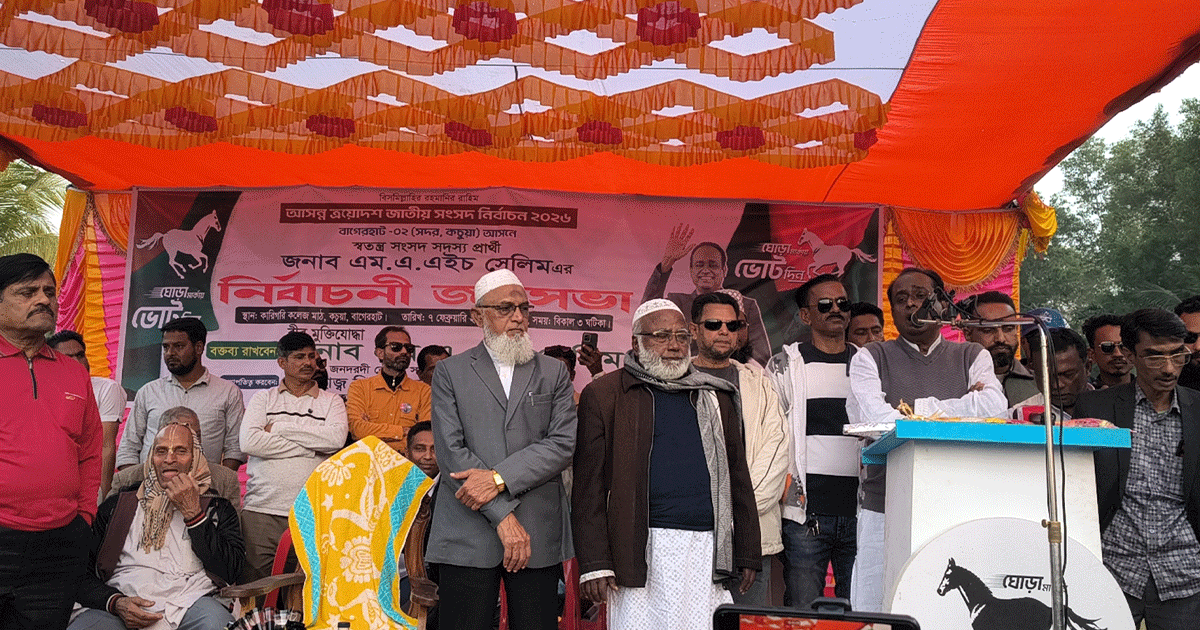 শনিবার বিকেলে বাগেরহাটের কচুয়া উপজেলায় আয়োজিত এ জনসভায় বিভিন্ন ইউনিয়ন থেকে আসা নেতাকর্মী, সমর্থক এবং নানা শ্রেণি-পেশার মানুষের স্বতঃস্ফূর্ত অংশগ্রহণ লক্ষ্য করা যায়।