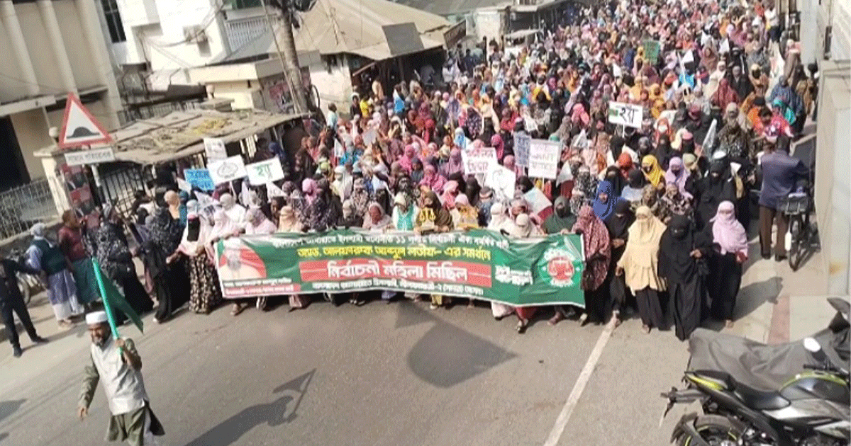 মিছিলে অংশ নেওয়া নারীরা জানান, নিজেদের নিরাপত্তা নিশ্চিত করার প্রত্যাশা থেকেই তারা দাঁড়িপাল্লা মার্কারের পক্ষে অবস্থান নিয়েছেন।