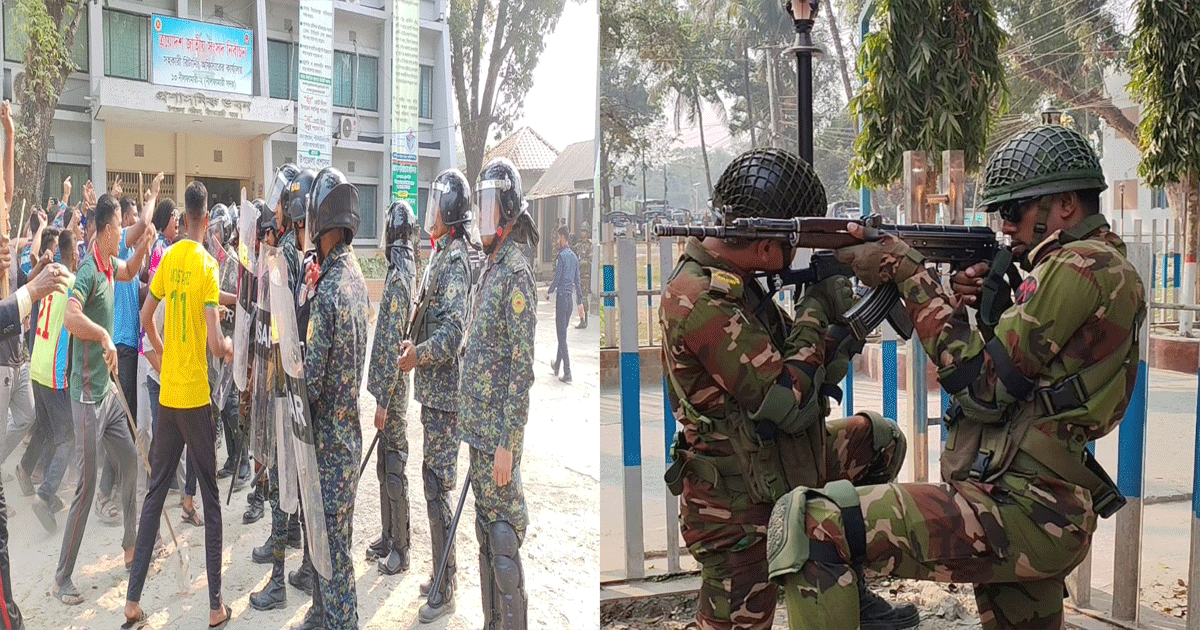 আসন্ন ত্রয়োদশ জাতীয় সংসদ নির্বাচনকে সামনে রেখে নীলফামারীতে যৌথ মহড়া করেছে সেনাবাহিনী, বিজিবি, পুলিশ ও আনসার বাহিনীর সদস্যরা।