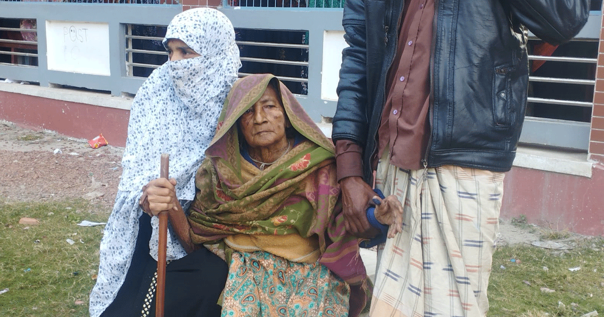 শরীর অচল, বয়সের ভারে হাঁটতে পারেন না। সন্তানদের কোলেই যার চলাফেরা। তবুও গণতন্ত্রের টানে স্বেচ্ছায় সকাল সকাল ভোট দিতে কেন্দ্রে আসলেন ১১৫ বছর বয়সী খাজামন বিবি। খাজামন বিবির বাসা মোহনপুর উপজেলার মোহনপুর গ্রামে। তিনি পাঁচ সন্তানের জননী।