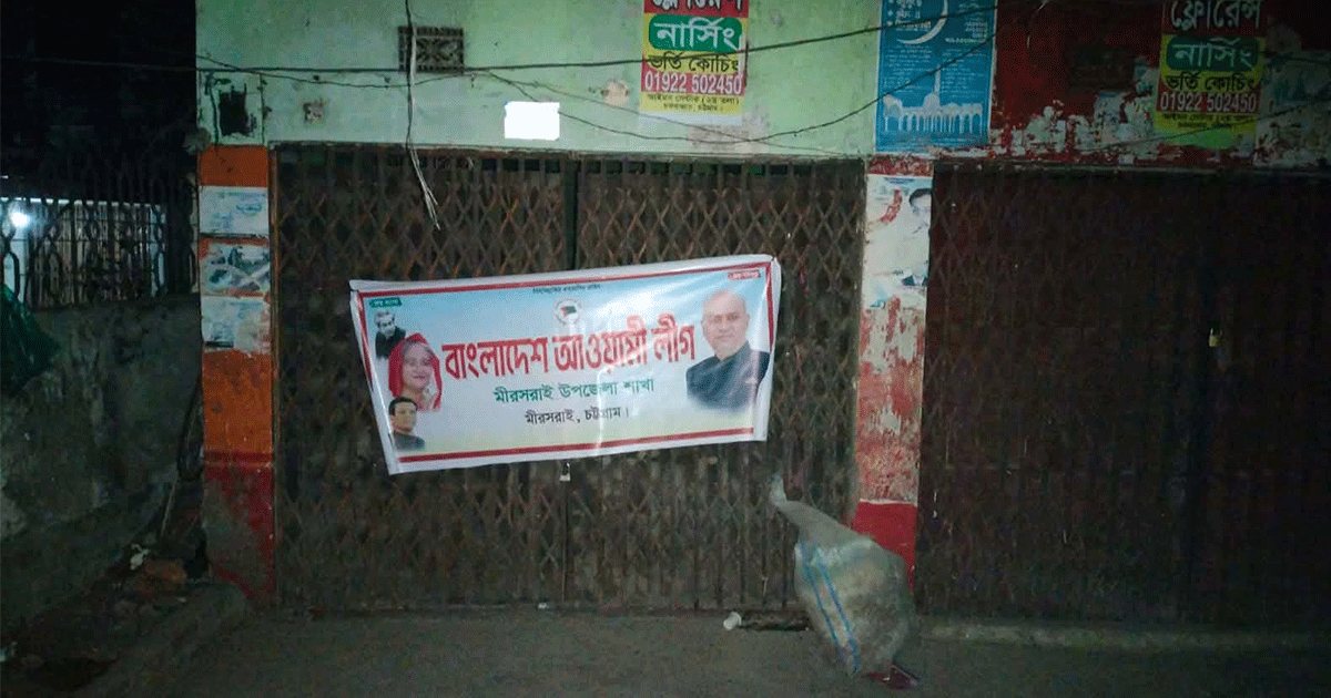 চট্টগ্রামের মিরসরাই উপজেলা আওয়ামী লীগ কার্যালয়ে গভীর রাতে ব্যানার টানানোর অভিযোগ উঠেছে যুবলীগের কয়েকজন কর্মীর বিরুদ্ধে। মঙ্গলবার রাত আনুমানিক ১টার দিকে উপজেলা সদরে অবস্থিত আওয়ামী লীগ কার্যালয়ের সামনের অংশে একটি ব্যানার ঝুলিয়ে স্লোগান দিয়ে দ্রুত স্থান ত্যাগ করেন তারা।