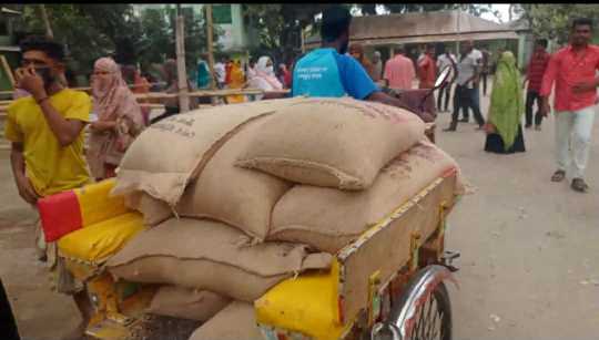 বিতরণ কার্যক্রম চলাকালে একই ব্যক্তি বারবার চাল নেওয়ার চেষ্টা করলে প্রশাসনের কর্মকর্তাদের সন্দেহ হয়। পরে বিষয়টি যাচাই করে পূর্ণিমাগাতী ইউনিয়ন পরিষদের সামনে একটি ঘরে অভিযান চালিয়ে ৩২ বস্তা চাল উদ্ধার করা হয়।