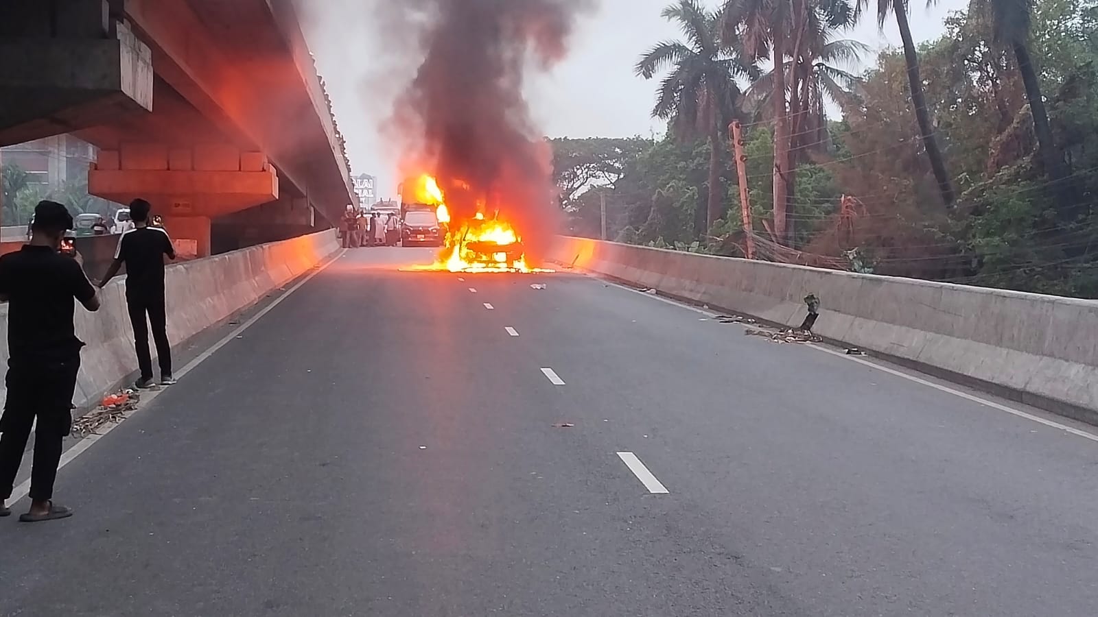 ঢাকা-ময়মনসিংহ মহাসড়কের টঙ্গী-আব্দুল্লাহপুর উড়ালসেতুতে একটি প্রাইভেটকারে আগুন লেগে গাড়িটি পুড়ে গেছে। সোমবার (৩০ মার্চ) বিকেল সাড়ে ৫টার দিকে টঙ্গীর কাদেরিয়া স্কুলের সামনে এ ঘটনা ঘটে। তবে এতে কোনো হতাহতের খবর পাওয়া যায়নি।