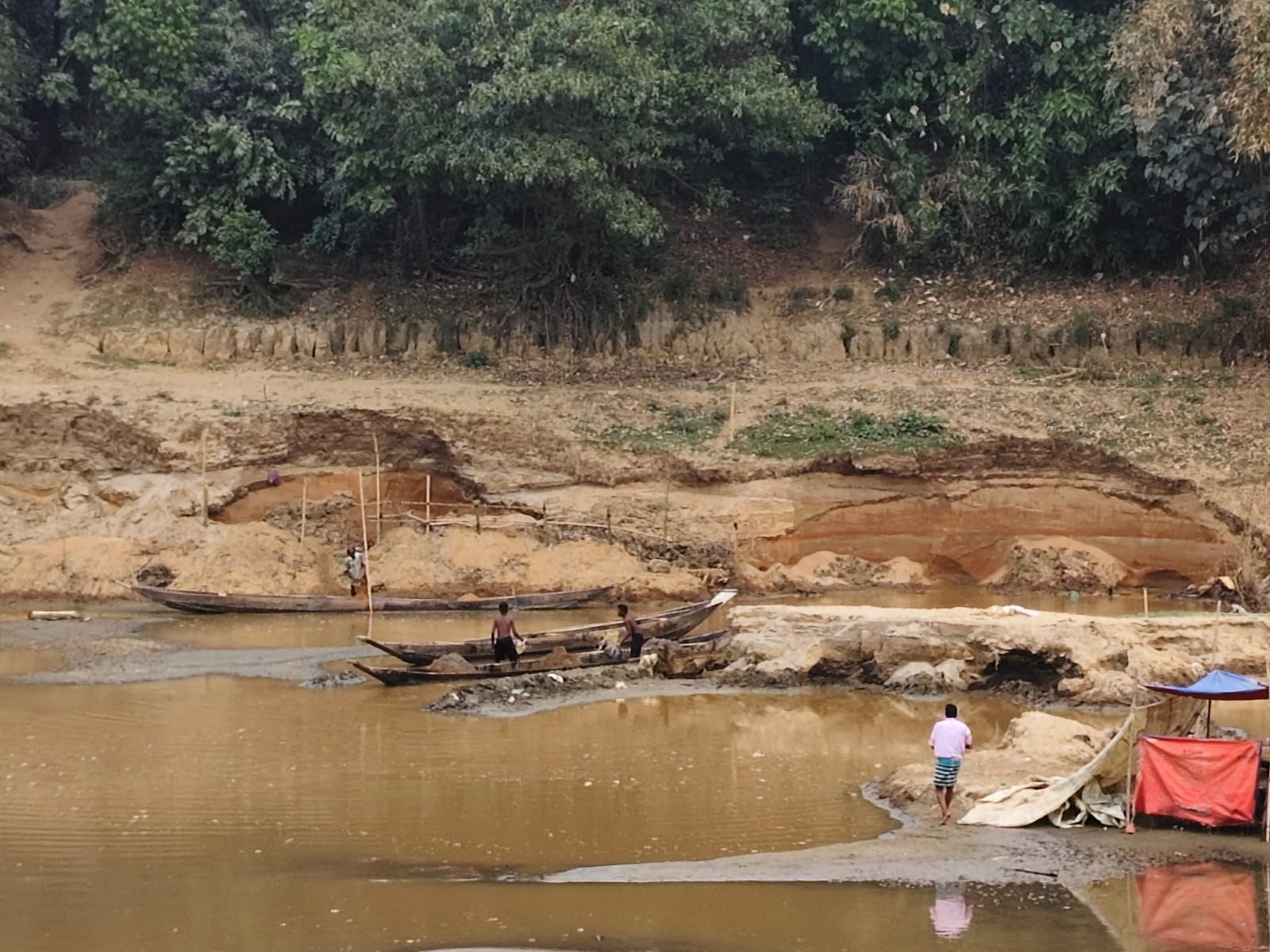 স্থানীয়দের সঙ্গে সরেজমিনে আলোচনায় জানা যায়, রহিমেরপাড়া এলাকা থেকে একই গ্রামের ফজর আলীসহ কয়েকজন দীর্ঘদিন ধরে সরকারি খাস জমি ও বেড়িবাঁধের গোড়া থেকে জোরপূর্বক বালু উত্তোলন করছেন। স্থানীয়রা বারবার বালু উত্তোলন বন্ধের চেষ্টা করেও তা বন্ধ হয়নি। উল্লেখ্য, গত বছর ফজর আলীকে অবৈধ বালু উত্তোলনের দায়ে ভ্রাম্যমান আদালত কারাদণ্ড ও অর্থদণ্ড প্রদান করে। অভিযোগের বিষয়ে ফজর আলীর সঙ্গে যোগাযোগ করা হলেও তাকে পাওয়া যায়নি।