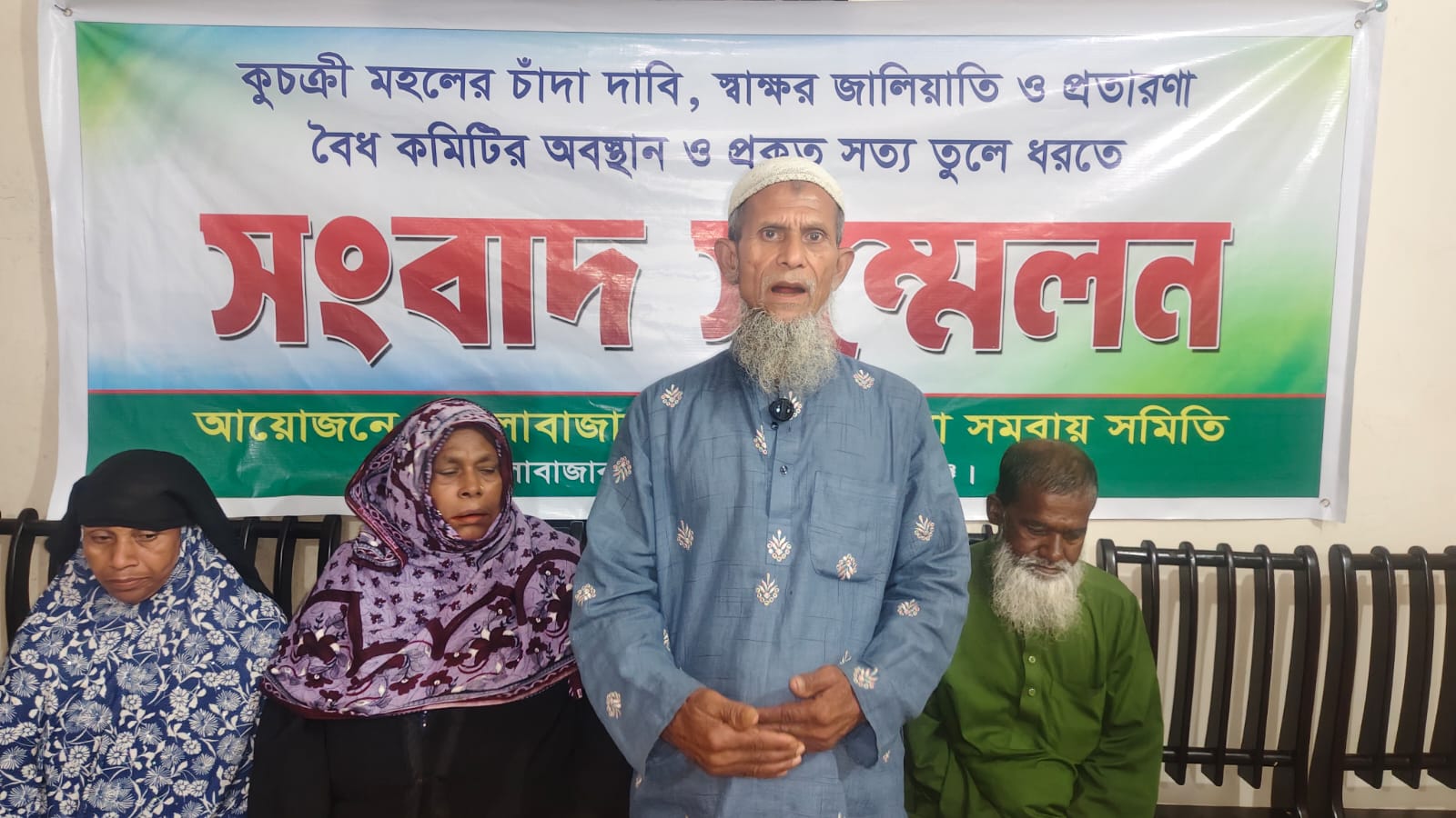 সংবাদ সম্মেলনে লিখিত বক্তব্যে জানানো হয়, স্থানীয় বিএনপি নেতা মোর্শেদ আলমের নেতৃত্বে একটি প্রভাবশালী মহল দীর্ঘদিন ধরে সমিতির বৈধ কমিটির সদস্যদের নাম ব্যবহার করে ভুয়া নথি তৈরি, স্বাক্ষর জালিয়াতি এবং সাধারণ সদস্যদের বিভ্রান্ত করার চেষ্টা করছে। একই সঙ্গে সমিতির কার্যক্রম সচল রাখতে মোটা অঙ্কের চাঁদা দাবি করা হচ্ছে বলেও অভিযোগ করা হয়।