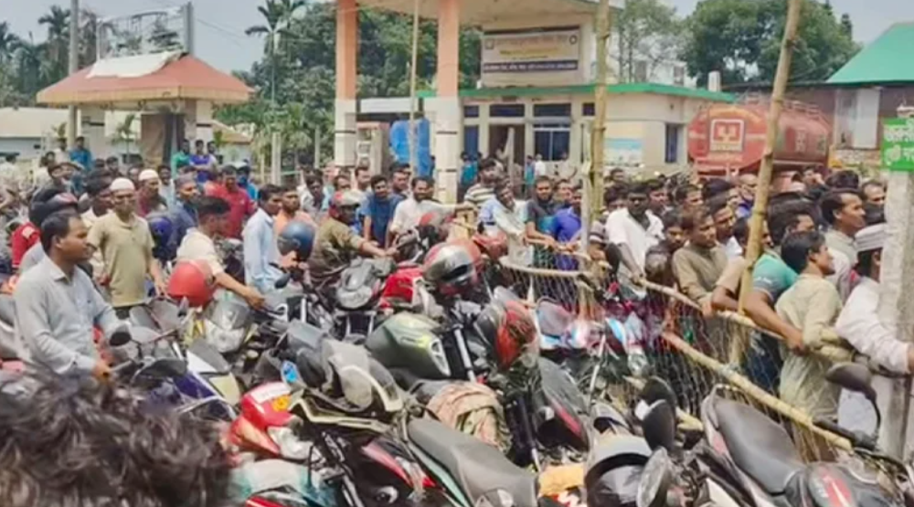 স্থানীয় সূত্রে জানা যায়, সকালে ‘মেসার্স জান্নাতুল মাওয়া ফিলিং স্টেশন’-এ মোটরসাইকেল চালকদের দীর্ঘ লাইন তৈরি হয়। তবে লাইনে থাকা অনেক চালকের কাছেই সরকারি নির্দেশনা অনুযায়ী প্রয়োজনীয় কাগজপত্র—ফুয়েল কার্ড, গাড়ির রেজিস্ট্রেশন ও ড্রাইভিং লাইসেন্স—ছিল না। ফলে বৈধ কাগজপত্রধারী চালকরাও তেল নিতে পারছিলেন না, এতে পরিস্থিতি উত্তেজনাপূর্ণ হয়ে ওঠে।