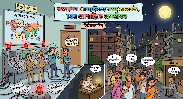 তীব্র গরমের মধ্যে দেশে ভয়াবহ লোডশেডিং পরিস্থিতি সৃষ্টি হয়েছে। দিনে-রাতে ঘণ্টার পর ঘণ্টা বিদ্যুৎ না থাকায় জনজীবনে নেমে এসেছে চরম দুর্ভোগ। শনিবার দুপুরে প্রায় ২ হাজার ৩০০ মেগাওয়াট লোডশেডিং হয়েছে বলে সংশ্লিষ্ট সূত্র জানিয়েছে। বিশেষজ্ঞরা বলছেন, বিদ্যুৎ খাতে অব্যবস্থাপনা, জ্বালানি সংকট এবং সরকারি বিভাগগুলোর সমন্বয়হীনতাই এ পরিস্থিতির মূল কারণ।