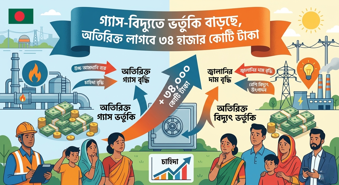 চলতি ২০২৫-২৬ অর্থবছরে বিদ্যুৎ ও গ্যাস খাতে নির্ধারিত ভর্তুকির বাইরে আরও ৩৪ হাজার কোটি টাকার অতিরিক্ত অর্থের প্রয়োজন হবে বলে জানিয়েছে বিদ্যুৎ ও জ্বালানি বিভাগ। বৈশ্বিক জ্বালানি বাজারের অস্থিরতা ও মধ্যপ্রাচ্যের চলমান যুদ্ধের প্রভাবে আমদানি ব্যয় বেড়ে যাওয়ায় এ চাপ তৈরি হয়েছে।