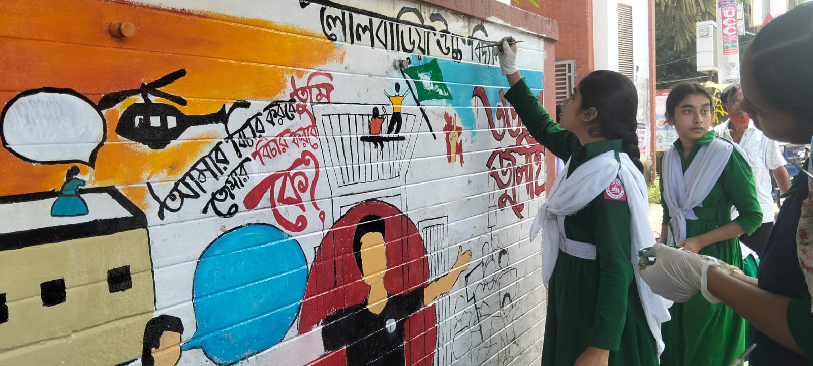 লোলবাড়ীয়া মাধ্যমিক উচ্চ বিদ্যালয়ের এক শিক্ষার্থী জানান, “আর যেন আমার ভাই-বোনদের ওপর স্বৈরাচারীরা গুলি না চালাতে পারে—এই প্রত্যাশায় আমরা ছবি আঁকছি। নতুন বাংলাদেশ গড়ার লক্ষ্যে এটি আমাদের ক্ষুদ্র প্রতিবাদ।”